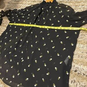 Cabi Medium Top Black Sheer Floral Embroidered Mock Neck Quarter Button Down