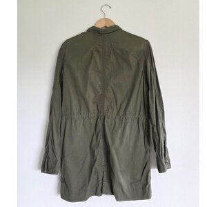 tags: Cabi, utility jacket, military jacket, anorak, field jacket, safari jacket, olive green, army green, khaki, cotton blend, contrasting trim, pockets, drawstring waist, travel, layering, streetwear, gorpcore, casual, transitional, spring, fall, designer, cargo