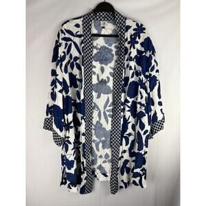 Cabi Mixed Print Kimono Size M/L Blue White Floral Open Front Top Flowy Shirt