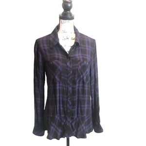 Cabi Moody Check Plaid Peplum Shirt Blue Black Size Medium Button Down casual