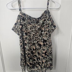 Cabi Multi Color Algeria Tiered Leopard Print Cold Shoulder Top Small, excellent condition