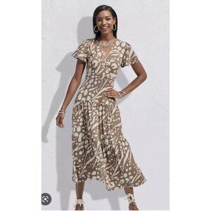 Cabi New NWT Swoon Dress #6147 Taupe ivory Pattern $158 Size Small