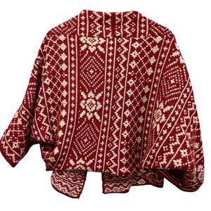 Cabi Nordic Fair Isle Shrug Cardigan, Red Ivory, L