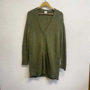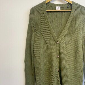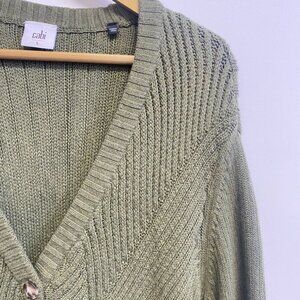 Cabi Olive Green Aerial Chunky Knit Cardigan Sweater