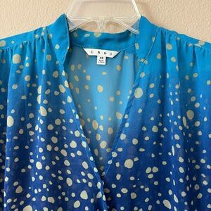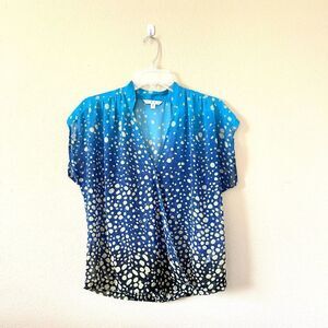 Beautiful ombre wrap top by Cabi! With bubble print. Short sleeves. Sheer. Size XS. Has a minor run as shown in one of the pics, but not noticeable. Still lots of life left!