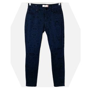 Cabi Paisley Print Mid Rise Navy Blue Curvy Skinny Jeans Size 0 Waist 24 Inches
