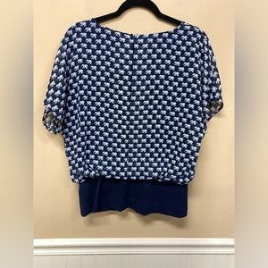 Cabi Parade Blouse Top Sz S Elephant Print Style# 5345 Navy Blue White