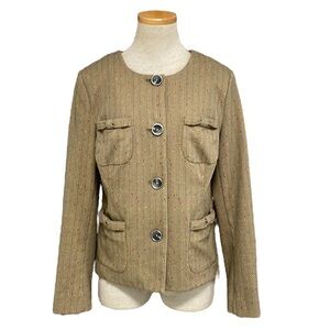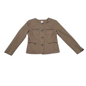 Cabi Penny Blazer Herringbone Brown Tan Bows Pockets Size Medium 3170