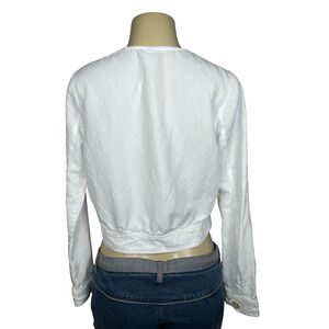 Cabi Piazza Jacket Womens Medium White Linen Blend Cropped Button Front