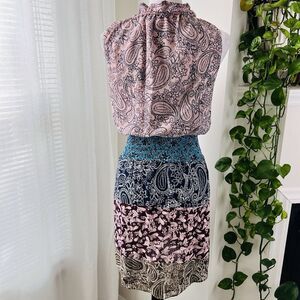 Cabi Pink & Blue Floral Patchwork Tiered Boho Earthy Sun Dress - Size XS