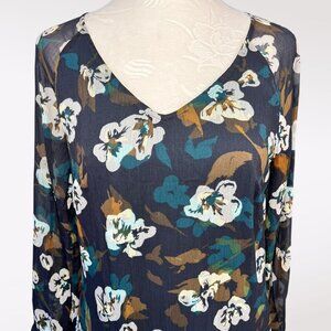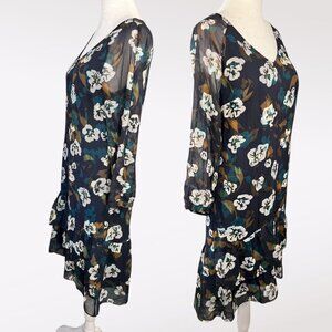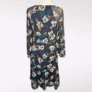Cabi Pirouette Floral Chiffon V-Neck Dress - 3/4 Sheer Sleeves