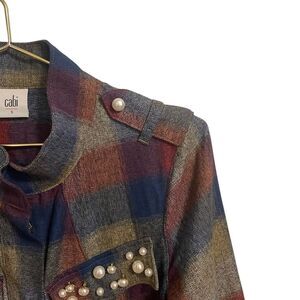 Cabi Plaid Collage Pearl Jacket Shacket Size Small