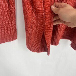 Cabi Playoff Sweater Cableknit Heathered Rust Red #4280 Pullover Split Side
