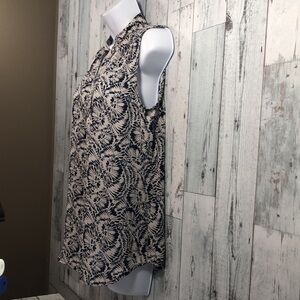 Navy blue & white, Henley button front, mandarin collar, high low tunic fit, sleeveless, light weight and loose fitting, colors may vary due to lighting, EUC, Size: S