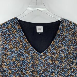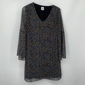 Cabi Poise flutter sleeve shift dress mini floral chiffon black blue v-neck S