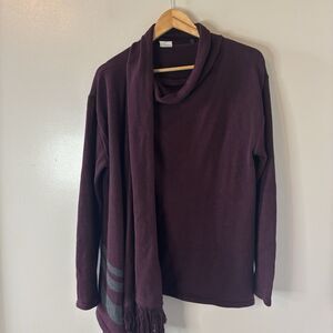 Cabi Port Fringe Wrap Sweater Asymmetrical Maroon Cardigan Size Medium #3002