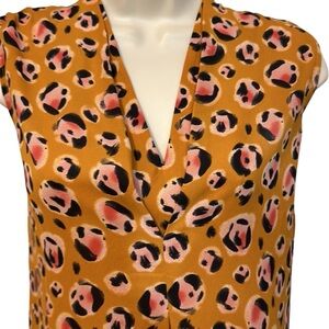 Cabi prowl sleeveless blouse in perfect condition. Finished in Sunset leopard pattern, and featuring a double v-neckline, and an inverted front tuck. Relaxed, easy fit. Hits at low hip. Bust is about 42," length is approximately 27." 100% polyester. Size M.