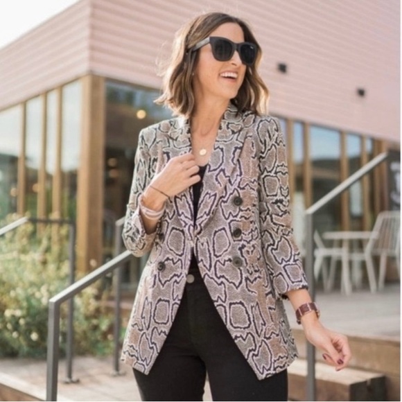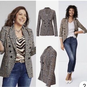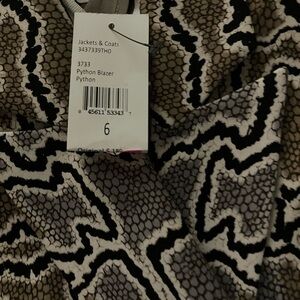 Chic CAbi blazer with fun snake print. Tailored design with classic lapel. Perfect for elevating any look. Great button detail. Fabric has stretch for comfort. New with tags.