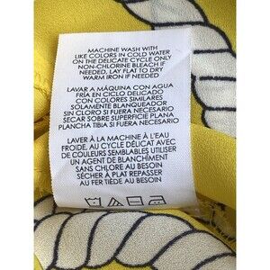 Add a pop of color to your wardrobe with this vibrant yellow Cabi Reef Knot blouse. The blouse features a V-neckline and long puff sleeves for a touch of elegance. It also has a zipper closure for easy wear and a peplum style that adds a touch of sophistication. The blouse is made of lightweight chiffon material that is easy to care for and machine washable.