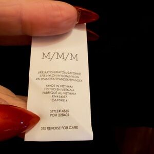 Material: It has a soft, structured feel, a slight high-low hemline, and a relaxed fit. The fabric blend is 59% rayon, 37% nylon, and 4% spandex.