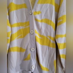 Cabi Roar Cardigan #5836 Yellow Ivory Zebra Large Oversized Fit Drop Shoulder