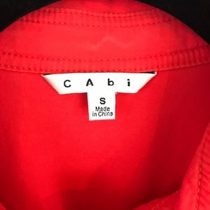 Size S Rustic Red Utility Jacket by Cabi. Gold buttons, four front pockets and cute ruffle detail on the back. In excellent used condition.