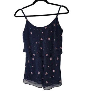 Cabi S Navy Tank Top Blue Tiered Floral Layered Fairy Cottage Summer Chiffon 795