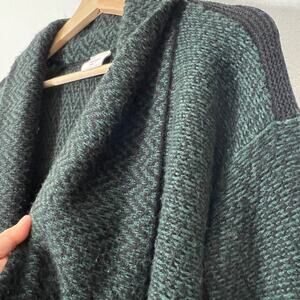 Cabi SMALL Green Black Chevron Knit Cardigan Sweater Long Sleeve Open Front