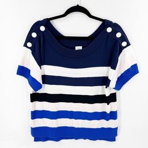 Cabi Sailor Stripe Pullover Knit Top Size SMALL BLUE/BLACK/PINK. EUC