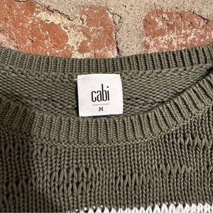 Cabi Sweater Top Womens Medium Green Striped Open Knit Long Sleeve Oversized Casual. Spring 2021 collection.
