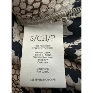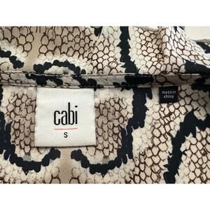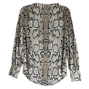 Cabi Serpentine Snakeskin Blouse Sz S Ruffle Collar Balloon Sleeve Split Neck