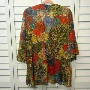 Cabi Shakespeare Floral 3/4 Sleeve Ruffle Kimono Tie Front Size Large