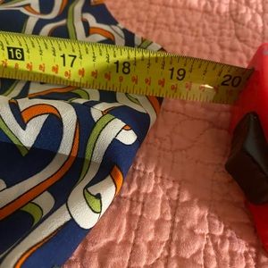 Silky fabric, gorgeous, lining, same colors, but striped. No rips or stains, all buttons in place, but that’s up the front. Put up pit just under 19”, pit to bottom 26” - 28” goes up on the sides, see photo.