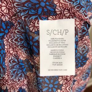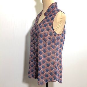 Cabi Shirt Womens Small Blue Red Sleeveless Sheer Blouse Mandarin Collar Fan