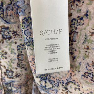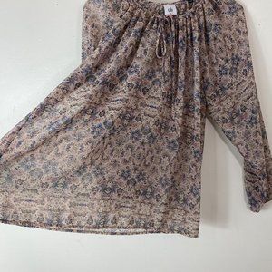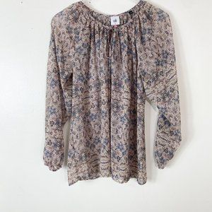 Cabi Sienna Floral Blouse Peasant S Beige Style #5028 Boho Long Sleeve Chiffon