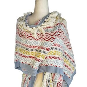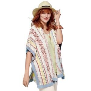 Cabi Siesta Knit Poncho S Boho Bohemian Sweater Open Front Fringe Vacation