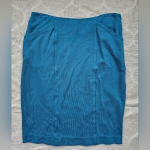 Cabi Sigourney Pencil Skirt Womens Sz 2 Turquoise Blue Pockets Side Zipper GUC