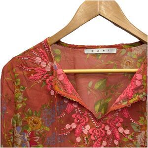 Cabi Silk Top Womens Small Embellished Fairy Floral Sheer Embroidered Boho Flowy