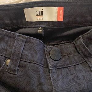 Brand new, no tags! 🌸These size 0 Cabi comfy skinny jeans are blue with the black pattern and have black matte hardware.🌸