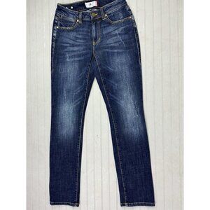 Cabi Size 2 Womens Jeans High Straight Stretch Dark Wash Distress