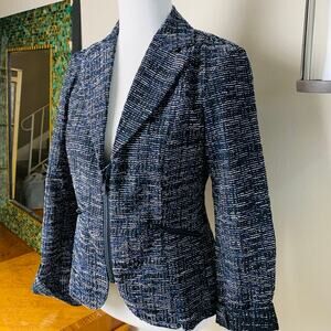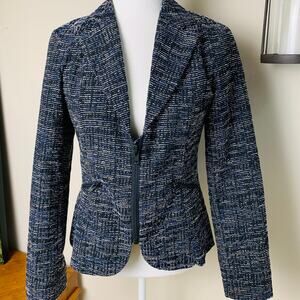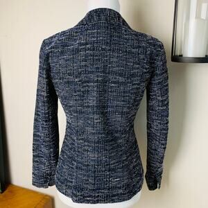 Cabi Size 4 Women's Tweed Blazer Jacket Black White Blue Zip Front Career Preppy