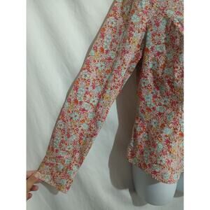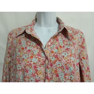 Cabi Size M Cotton Blend Long Sleeve Pink Floral Button-down Barbie Core Blouse