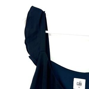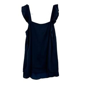 Cabi Size Medium Blouse Blue Black Ruffle V Neck Sleeveless Solid Tank