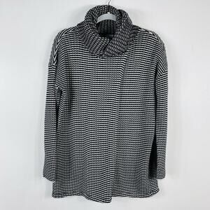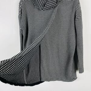 Cabi Size Medium Fergie Split Turtleneck Sweater Black White 100% Cotton 3167