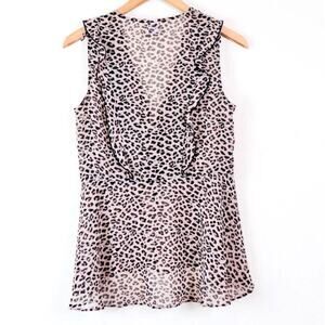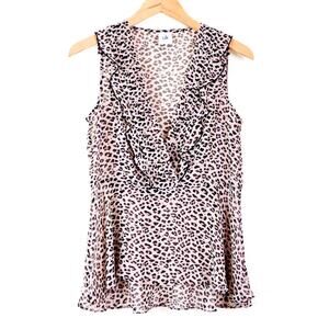 Cabi Size S Flutter Top Ruffle 3612 Sheer Leopard Print Brown Cream