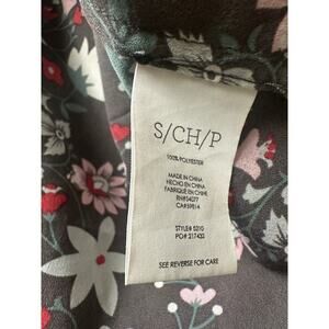 Cabi Size Small Button Front Henley Blouse Floral Print Work Gray Red Office