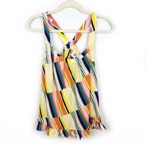 Cabi Skip Halter Tank retro colors striped bold print summer tank size: S