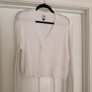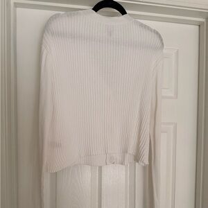 Lightweight ribbed cardigan sweater. Slightly cropped. Optic white. Button front. V neck.