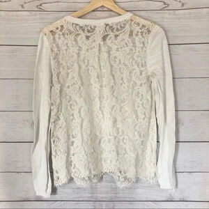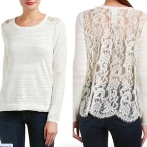 Cabi Sophia White Lace Back Crewneck Pullover Sweater