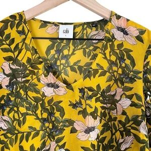 Cabi Spring Scene Yellow Floral Bell Sleeve Sheer Blouse Top, Size Small